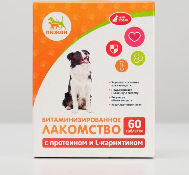 Лакомства "Пижон" для собак, с протеином и L-карнитином, 60 табл.