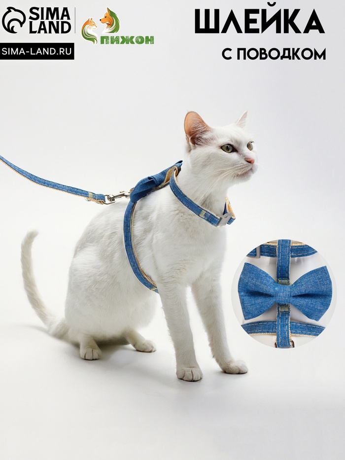 Комплект для кошек, ширина 1 см, ОШ 16,5-27 см, ОГ 21-35 см, поводок 120 см, синий