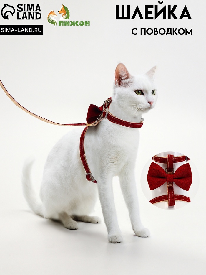 Комплект для кошек, ширина 1 см, ОШ 16,5-27 см, ОГ 21-35 см, поводок 120 см, красный