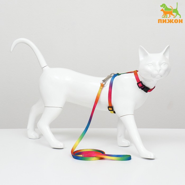 Комплект для кошек "Радуга", ширина 1 см, ОШ 16,5-27, ОГ 21-35 см, поводок 120 см