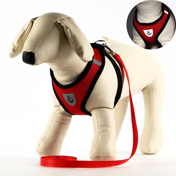 Комплект амуниции с мягкой шлейкой и светоотражающей нашивкой, M, ОШ 26, ОГ 36-44, красный
