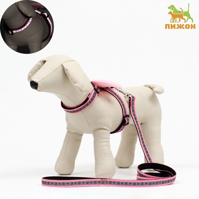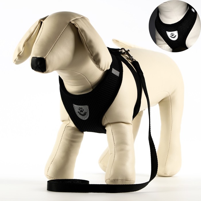 Комплект амуниции с мягкой шлейкой и светоотражающей нашивкой, L, ОШ 33, ОГ 36-48, чёрный