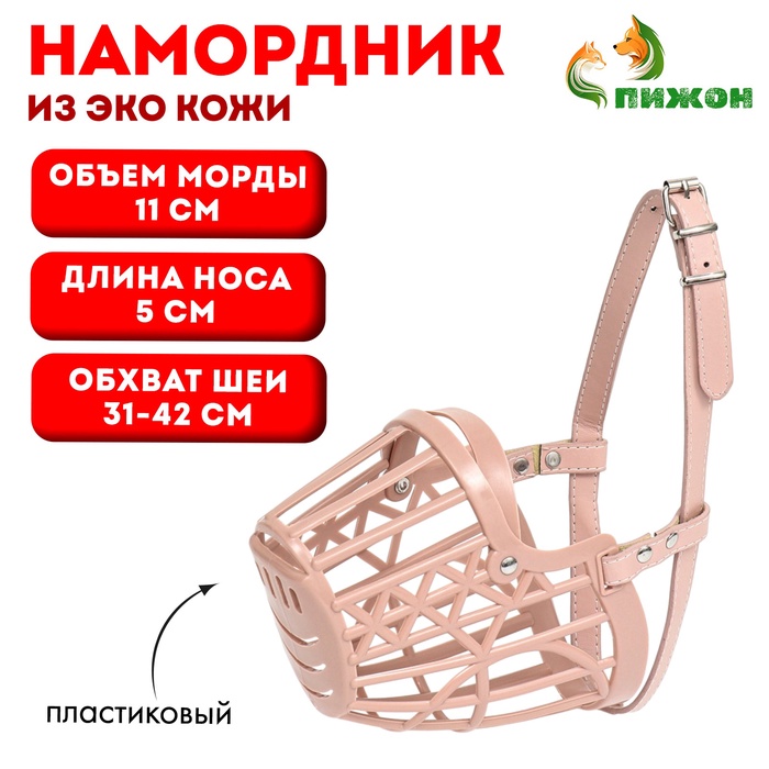 Намордник пластиковый №1 с ошейником из эко кожи ОМ 11 см ДН 5 см ОШ 31-42 см