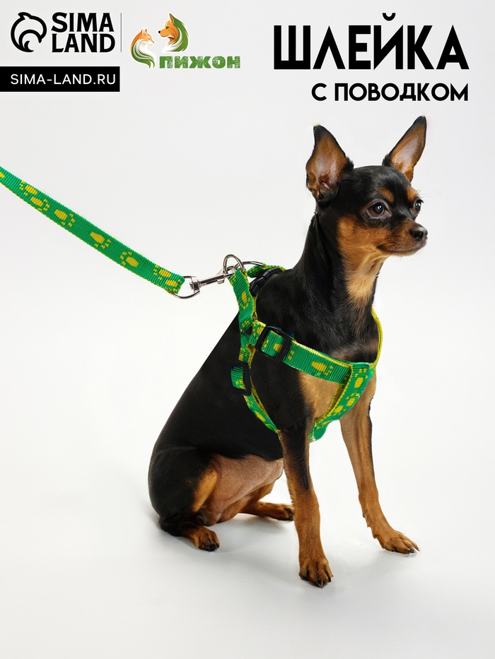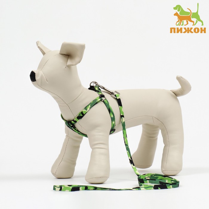Комплект "Большая лапа", ширина 1,5 см, поводок 120 см, шлейка 28-42 см, жёлто-зелёный