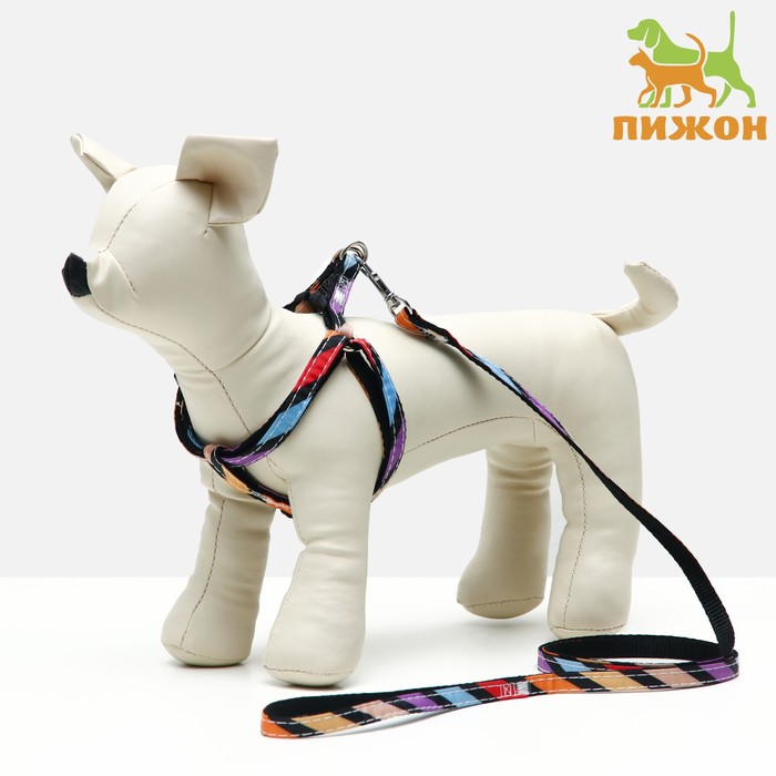Комплект амуниции двухслойный, S, поводок 120х1 см,ОШ 24-38 ОГ 29-41 см, разноцветные полосы 96837