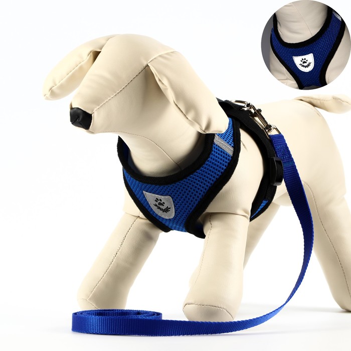 Комплект амуниции с мягкой шлейкой и светоотражающей нашивкой, M, ОШ 26, ОГ 36-44, синий