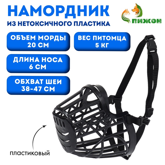 Намордник пластиковый № 2, ОМ 20 см, ДН 6 см, ОШ 38-47 см, вес питомца 5 кг