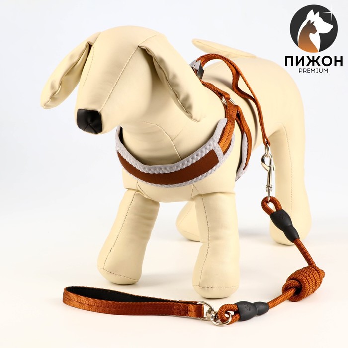 Комплект мягкая шлейка, круглый поводок 1,5 х 120 см с вертлюгом, M, ОШ 32-72 см, ОГ 32-72 см, корич