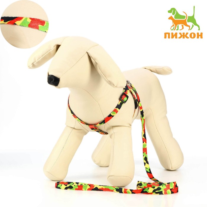 Комплект амуниции рельефный, 2 см, поводок 120 см,красно-жёлтый