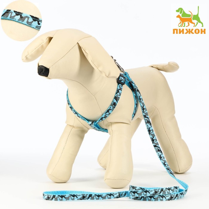 Комплект "Камуфляж", ширина 1 см,шлейка 21-35 см,поводок 120 см,капрон,капрон, сине-голубой