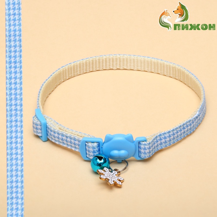 Ошейник кошачий "Снежинка", с бубенчиком и подвесом, 30 х 1 см, полиэстер, голубой