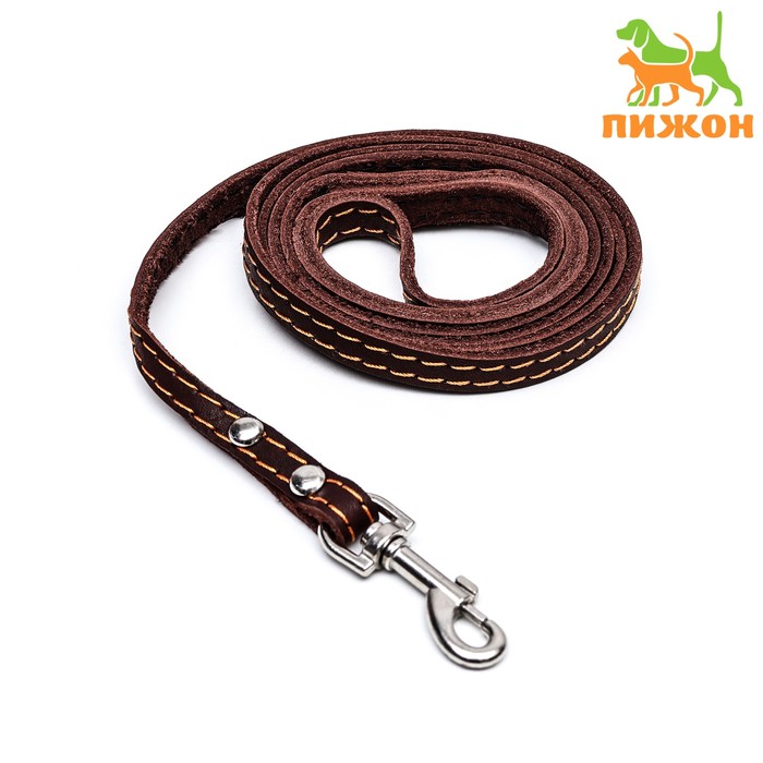 Поводок кожаный однослойный, простроченный, 1.37 м х 1 см, коричневый
