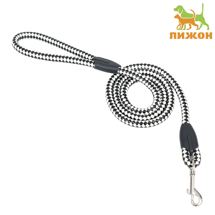 Поводок круглый "Рябь", экокожа, 120 х 1,2 см, чёрно-белый