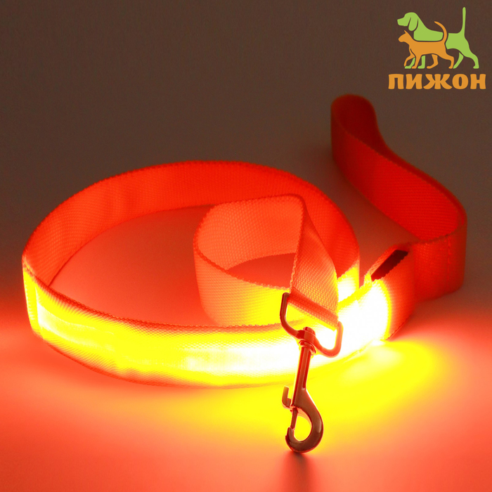 Поводок с подсветкой 3 режима свечения, 120 х 2,5 см, оранжевый