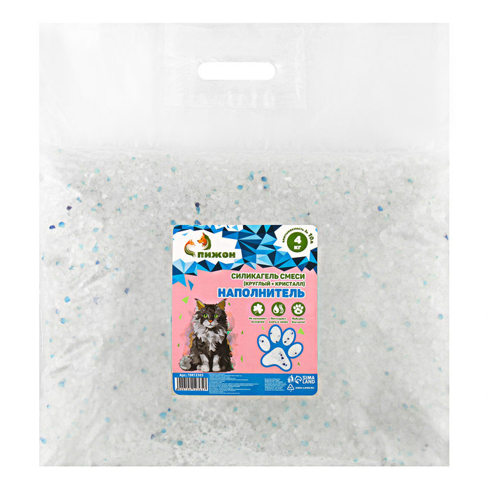 Наполнитель "Пижон" силикагель круглый + кристаллы 4 кг впитываемость до 10 л