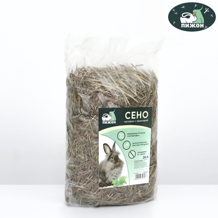 Сено луговое с крапивой резаной «Пижон» для грызунов, 20 л, 500 г