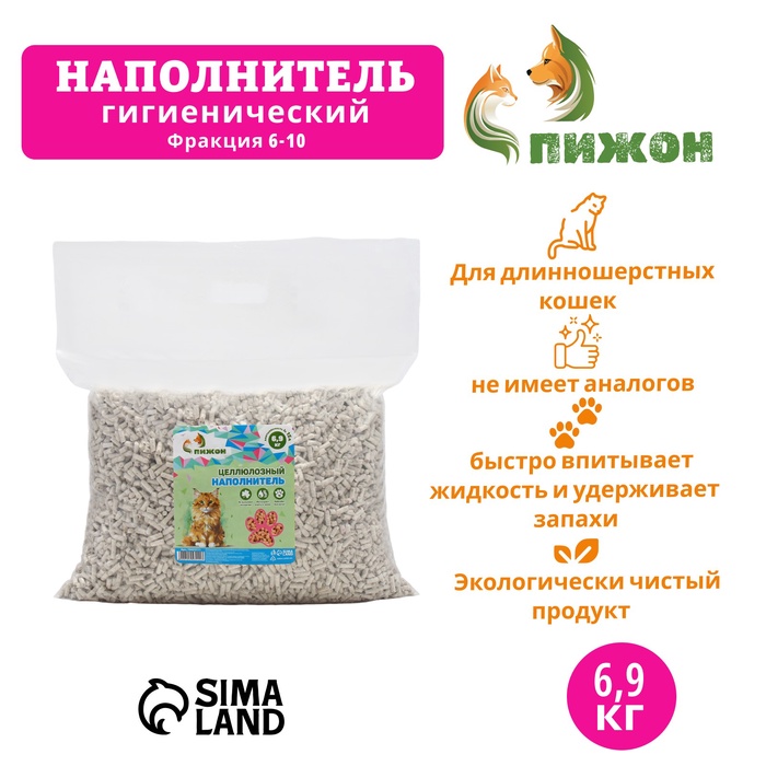Наполнитель целлюлозный "Пижон" 6,9 кг впитываемость до 15 л