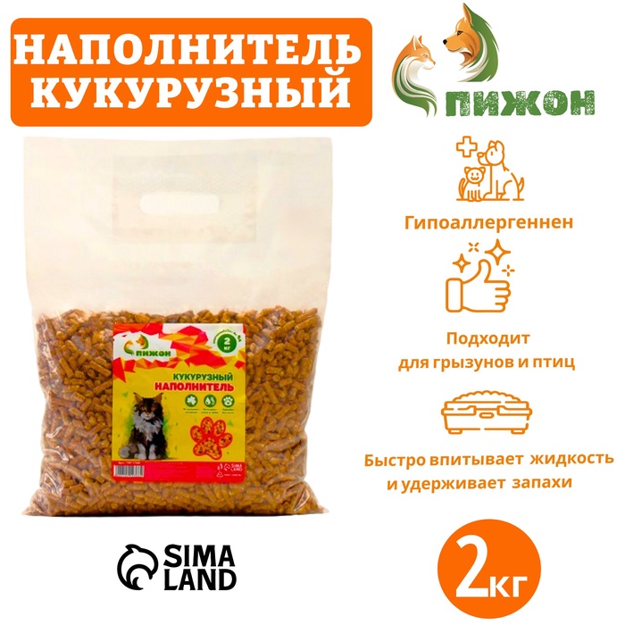 Наполнитель кукурузный гранула "Пижон" , 2 кг впитываемость до 4 л