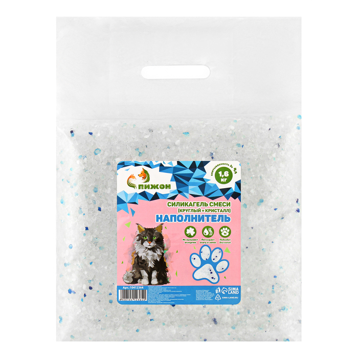 Наполнитель "Пижон" силикагель круглый + кристаллы 1,6 кг впитываемость до 4 л