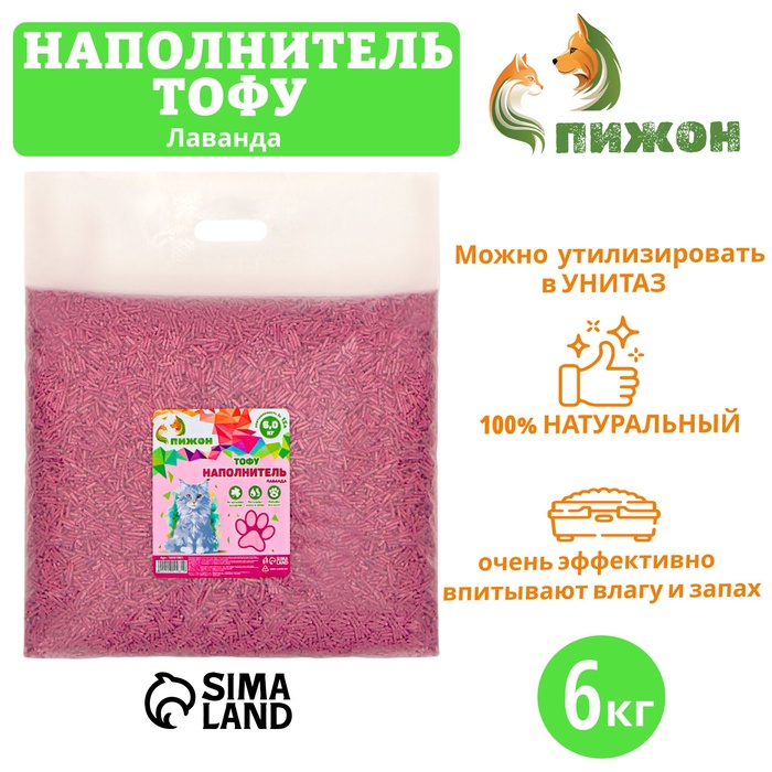 Наполнитель тофу, "Пижон" лаванда 6кг впитываемость до 15 л