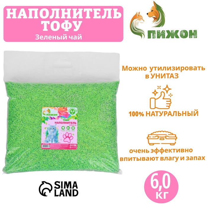 Наполнитель тофу, "Пижон" зеленый чай 6 кг впитываемость до 15 л