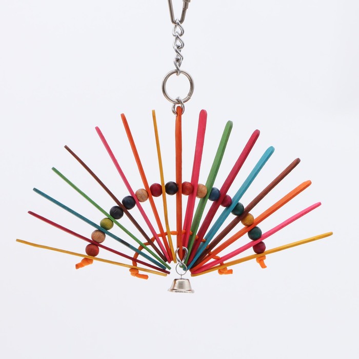 Игрушка для птиц "Веер" с колокольчиком, разноцветная, 20 х 20 см