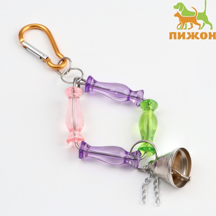 Игрушка для птиц "Ромб из бусин" с колокольчиком, 7 х 20 см, микс цветов