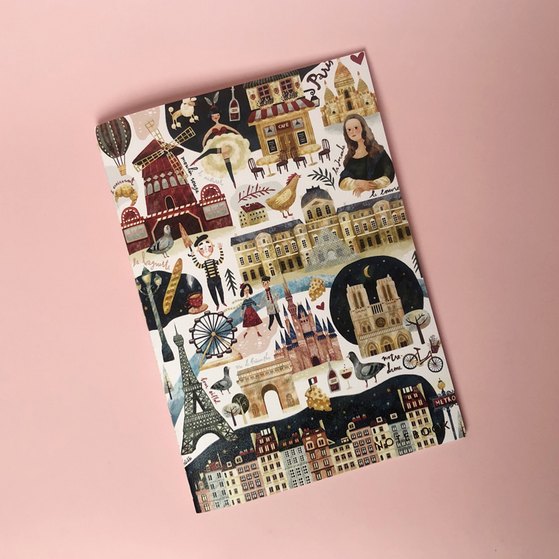 Записная книжка А5 24л., сшивка "Paris", 90г/м2, золотое тиснение, тонированный блок в клетку