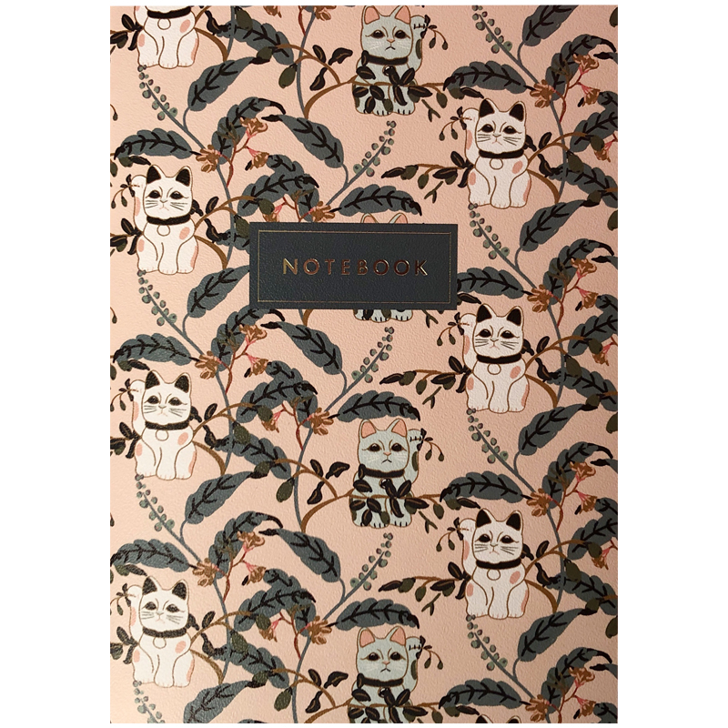 Записная книжка А5 24л., сшивка "Maneki-Neko", 90г/м2, золотое тиснение, тонированный блок в клетку