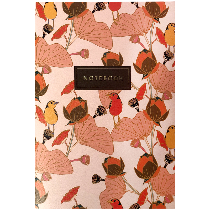 Записная книжка А5 24л., сшивка "Flower bird" 90г/м2, золотое тиснение, тонированный блок в точку