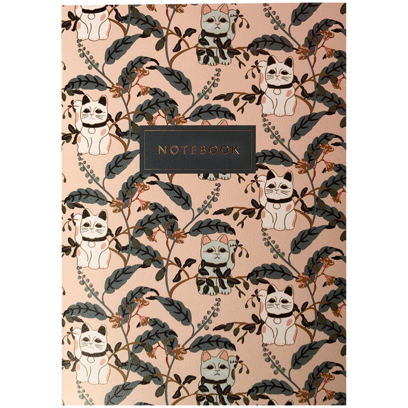 Записная книжка А5 24л., сшивка "Maneki-Neko" 90г/м2, золотое тиснение, тонированный блок в точку