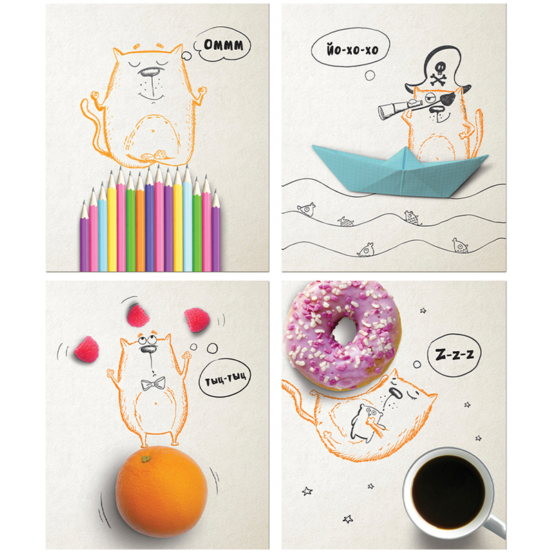 Тетрадь 48л., А5, клетка Полином "Жил-был Кот", выборочный УФ-лак