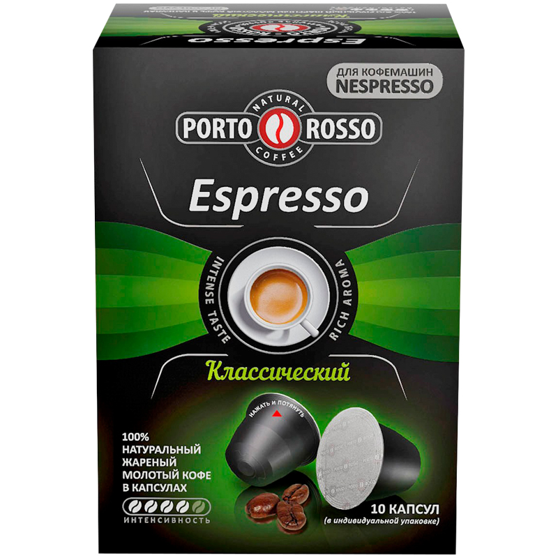 Кофе в капсулах Porto Rosso "Espresso", капсула 5г, 10 капсул, для машины Nespresso