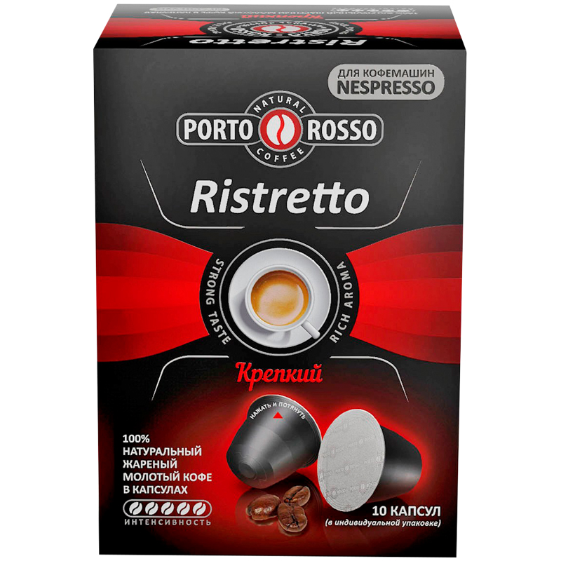 Кофе в капсулах Porto Rosso "Ristretto", капсула 5г, 10 капсул, для машины Nespresso