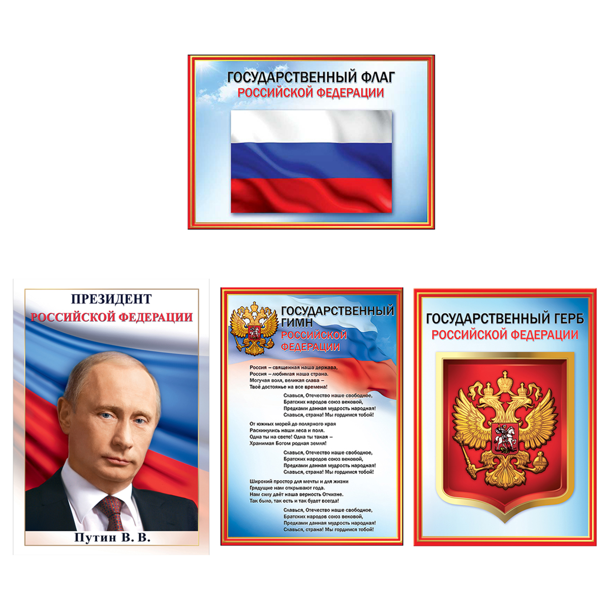 Набор обучающих плакатов Праздник "Российская символика", А4, 4 плаката