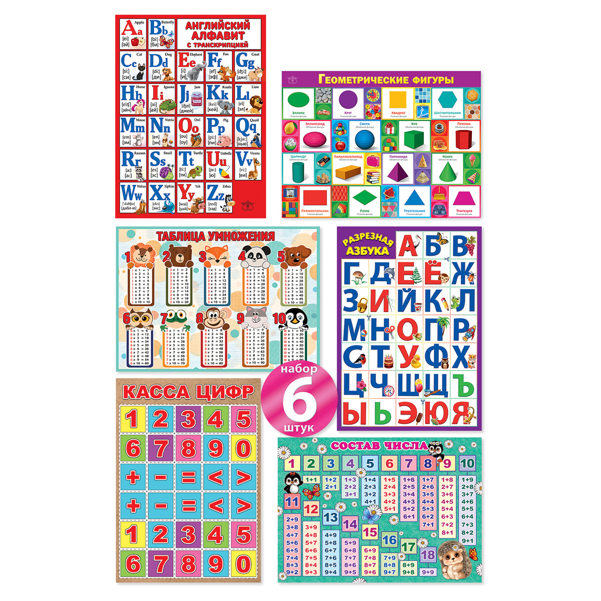 Набор обучающих плакатов Праздник "Дошкольник", А4, 6 плакатов