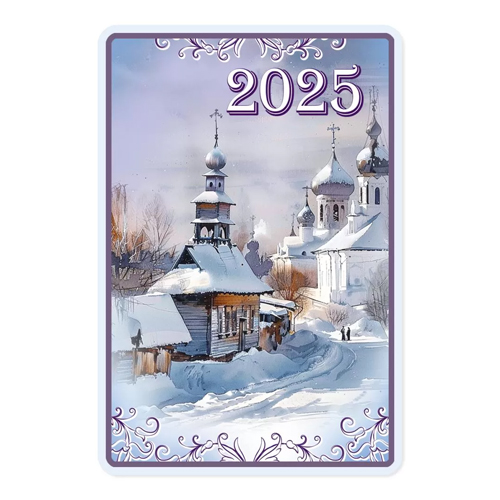 Календарь карманный " Праздник " 015 на 2025г 65*96мм, Храм, снег, глянцевый уф-лак, картон