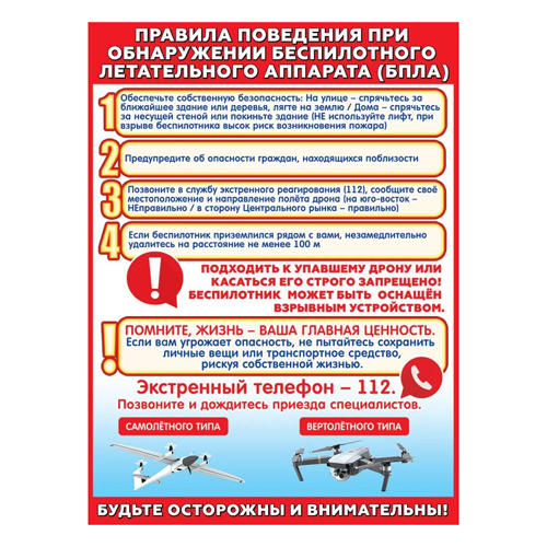 Плакат " Праздник " 941 А2 Правила поведения при обнаружении беспилотного летательного аппарата (БПЛА), текст, без отделки