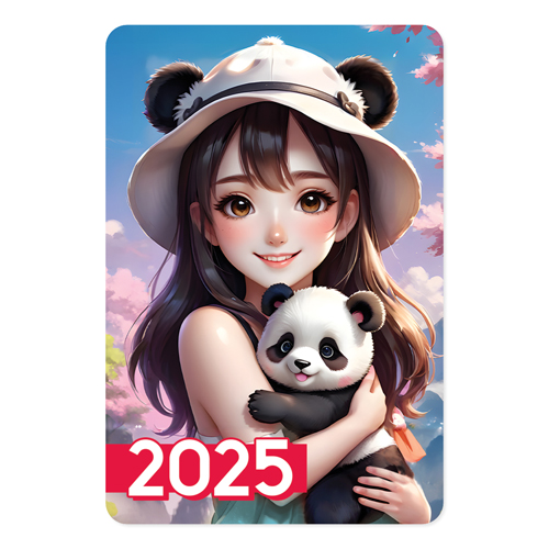Календарь карманный " Праздник " 015 на 2025г 65*96мм, Аниме-девочка с пандой, глянцевый уф-лак, картон