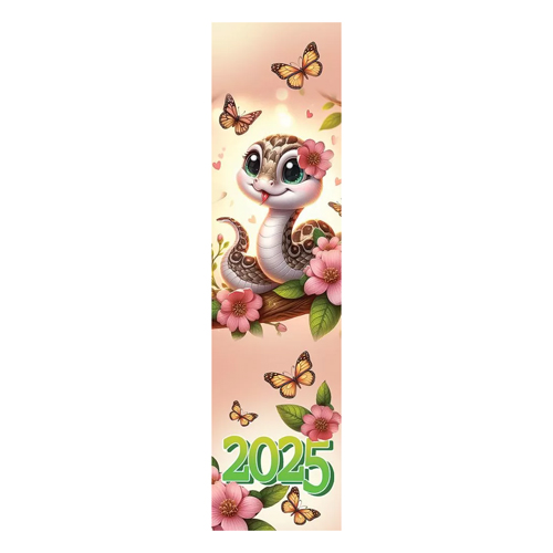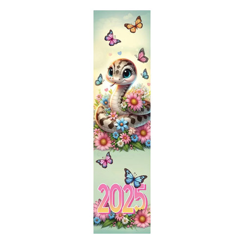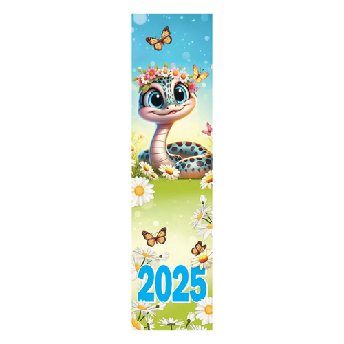 Закладка-календарь " Праздник " 070 на 2025 год Символ года. Змея в цветах, бабочки, зеленая, 64*252мм, картон, глянцевый УФ-лак