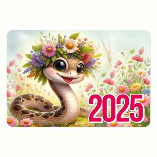 Календарь карманный " Праздник " 015 на 2025г 65*96мм, Символ года- Змея с венком, глянцевый уф-лак, картон