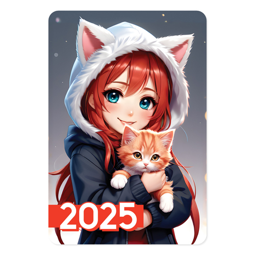 Календарь карманный " Праздник " 015 на 2025г 65*96мм, Аниме-девочка с котенком, цветы, глянцевый уф-лак, картон