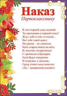 Наказ первокласснику Формат А4.