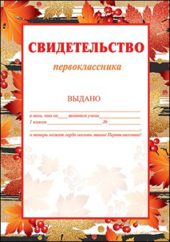 Свидетельство первоклассника Формат А4