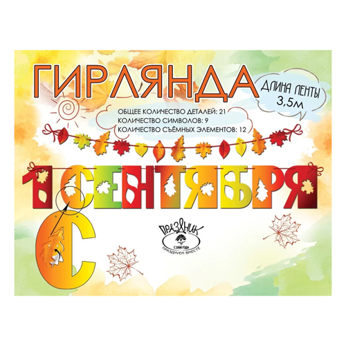 Гирлянда " Праздник " 944 1 сентября! 21 элемент, длина 3,5м, глянцевый УФ-лак, на подложке с лентой