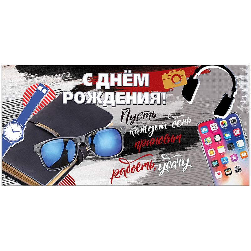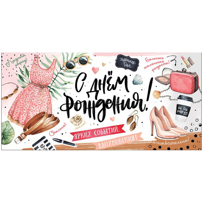 Конверт для денег Праздник "С Днем рождения!", 84*168мм, лак
