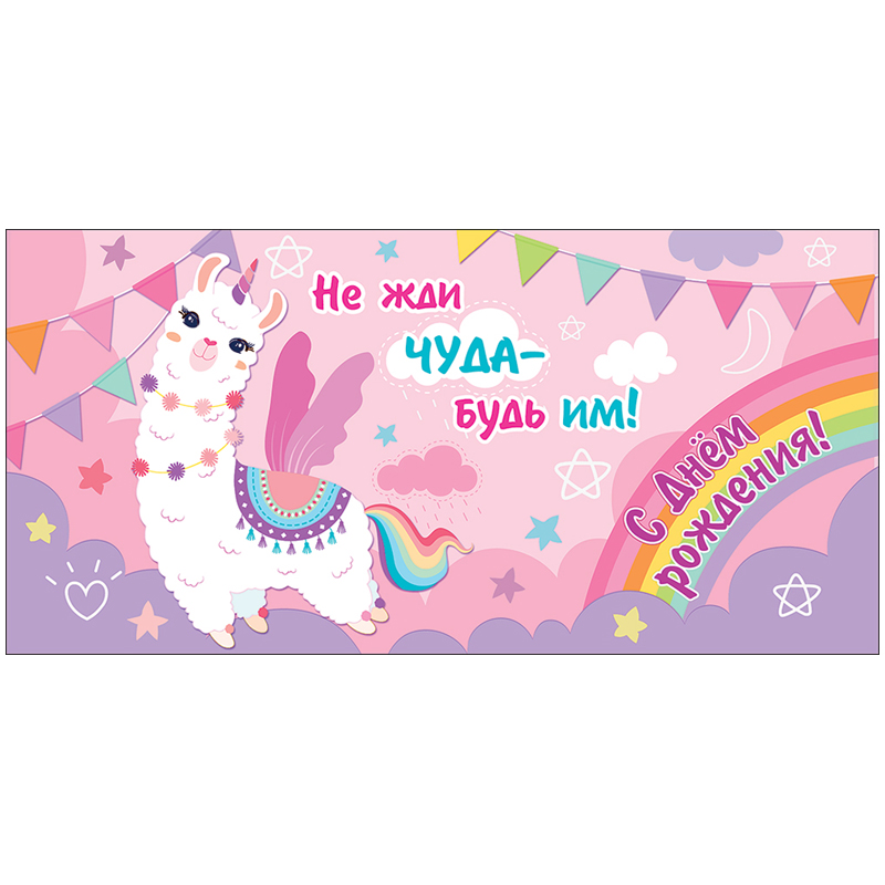 Конверт для денег Праздник "С Днем рождения! Не жди чуда - будь им!", 82*168мм, УФ-лак