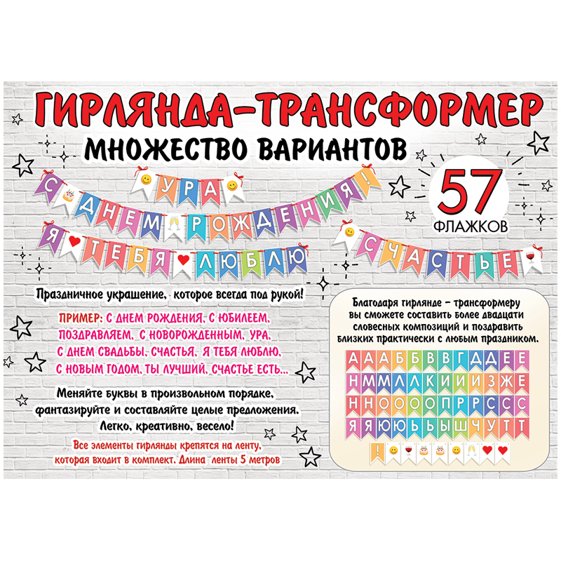 Гирлянда-буквы Праздник "Трансформер", 400см, на ленте, 57 элементов