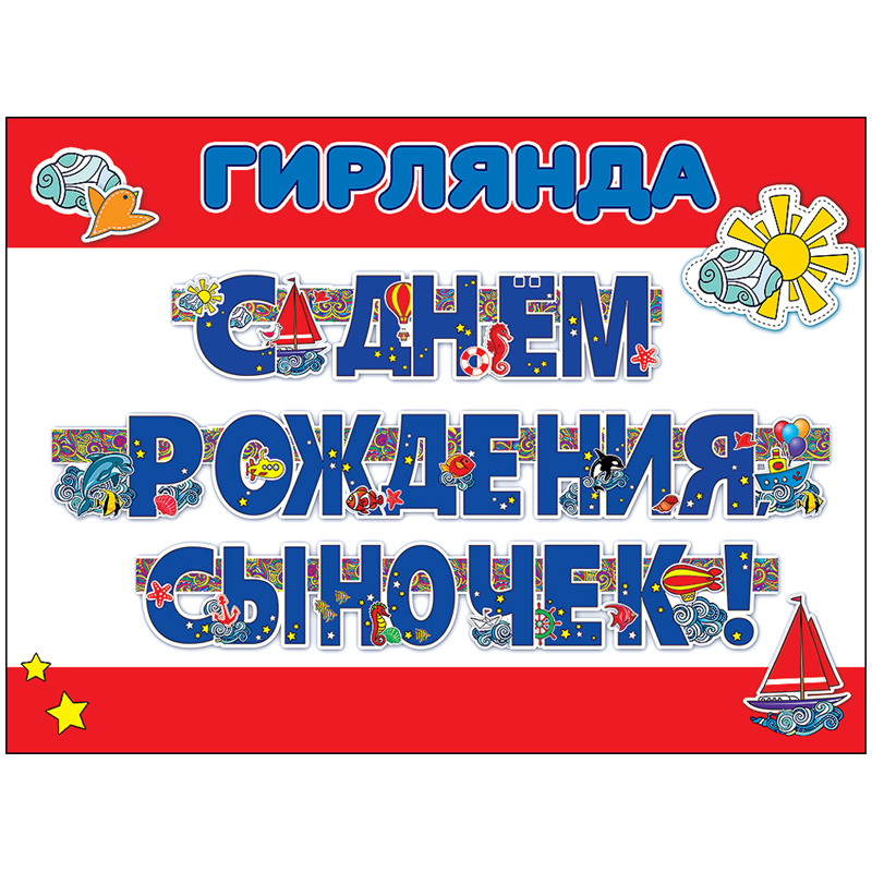 Гирлянда-буквы Праздник "С Днем рождения, сыночек!", 300см, УФ-лак, пикколо