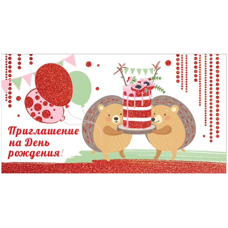 Приглашение Империя поздравлений "День рождения", 126*64мм, блестки